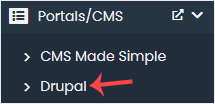 4. On the left side, locate the Portal/CMS category. Click on it and then on the Drupal link that appears.