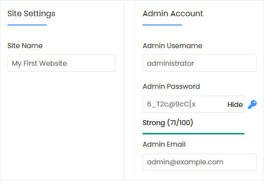 • Admin Username: Your new Drupal username (for security reasons, do not use the administrator or the admin username).